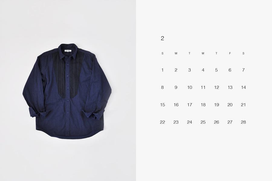 デザイン・シルエットタキシードシャツをイメージした、 前身頃のピンタックとイカ胸を組み合わせたデザイン。 新鮮なバランスで、控えめな華やかさがあるシャツになりました。 モリカゲシャツのスタンダードなシルエットで、肩まわりはすっきりとフィットし、身幅には程よいゆとりを持たせています。ドレスシャツのようなきちんと感がありながら、動きやすく、リラックスした着心地が特徴の一枚です。衿は小ぶりな「ミニレギュラーカラー」で、シャープなイカ胸と合わせることで、 洗練された雰囲気にまとめています。 生地・素材前身頃の生地はピンタック調のドビー織り。イカ胸、ベース生地は綿とポリエステルの混紡素材の デニムシャンブレーを使用しています。 柔らかな素材感でシワになりにくく、出張や旅行にも適しています。 製品洗い仕上げ(ワンウォッシュ)を施していますので、お手元に届いたときから、洗いざらしの自然な風合いです。 ※デニムシャンブレーに白やグレーのネップ(節)がランダムにあります。生地の特徴としてご理解ください。 品番・色柄:MS260113-NV(ネイビー) 素材(本体):綿75% ・ポリエステル25% 素材(別布):綿66%・ナイロン31%・ポリウレタン3% えり型:ミニレギュラーカラー袖 丈:長袖ポケット:なし ボタン:軟質素材ボタン(ポリエステル)/11.5mm 洗 濯:洗濯機で水洗い可能(中性洗剤使用)アイロン低温使用/ドライクリーニング可能 原産国:日本 重 量:250g