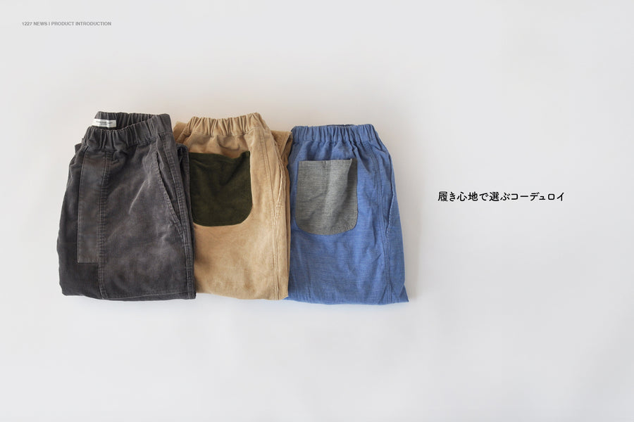 デザイン・シルエットベルトラインとポケットを生地の裏側(バック)で切替えたデザイン。 タイトすぎずゆったりすぎないテーパードシルエットです。生地・素材14ウェルのストレッチコーデュロイを使用。 パンツではポピュラーな中畝のコーデュロイです。 綿98%・ポリウレタン2%の混紡素材ですので、 柔らかさとハリの両方があって、 生地表面に起毛した凹凸があることで保温性が高くシルエットと履き心地をキープします。 *14ウェル:コーデュロイの畝が1インチ間に14本あることを表したもの コーディネートベージュにはインディゴオックスのカーブラインシャツ(ネイビーミックス)、カーキーグリーンにはインディゴオックスのカーブラインシャツ(ネイビー×ベージュストライプ)を合わせています。 <関連するNEWS> 履き心地で選ぶコーデュロイ(2025.12.27) 品番・色柄:MTAP944-BE(ベージュ) MTAP944-KHG(カーキグリーン)素 材:綿98%/ポリウレタン2%ウエスト:総ゴム仕様ポケット:左右前斜めポケット、左右後パッチポケットスタイル:テーパードシルエット/一重仕立て洗 濯:洗濯機で水洗い可能(中性洗剤使用・単独洗濯)ドライクリーニング可能/アイロンは低温で使用 原産国:日本 重 量:543g